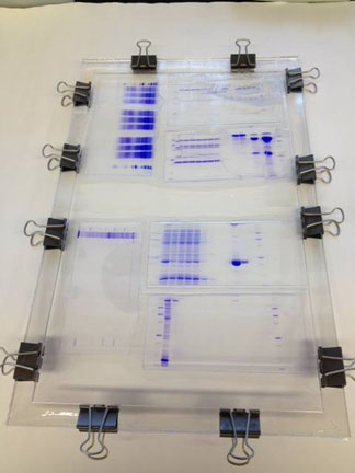 Preserve your data for future generations. Most gels can be dried by positioning them on the solid backing plate of our gel dryer, covering them with wet semi-permeable cellophane and clamping a frame over them to hold the cellophane flat. Tut's Tombs also produce great fluorographs. Order a frame with an open area somewhat larger than the gel to be dried. Note our cellophane is less than half the cost of other suppliers. Best for gels thinner than 1.5 mm. Instructions included.